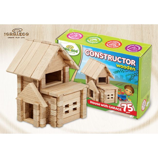 LITTLE HOUSE WITH GARAGE? 2in1: a compact wooden house and a garage for a favorite car. Stacking planks is not difficult and very interesting; all the stages are described in detailed instructions. IGROTECO Building Set is a wonderful gift to kids which will decorate any nursery.