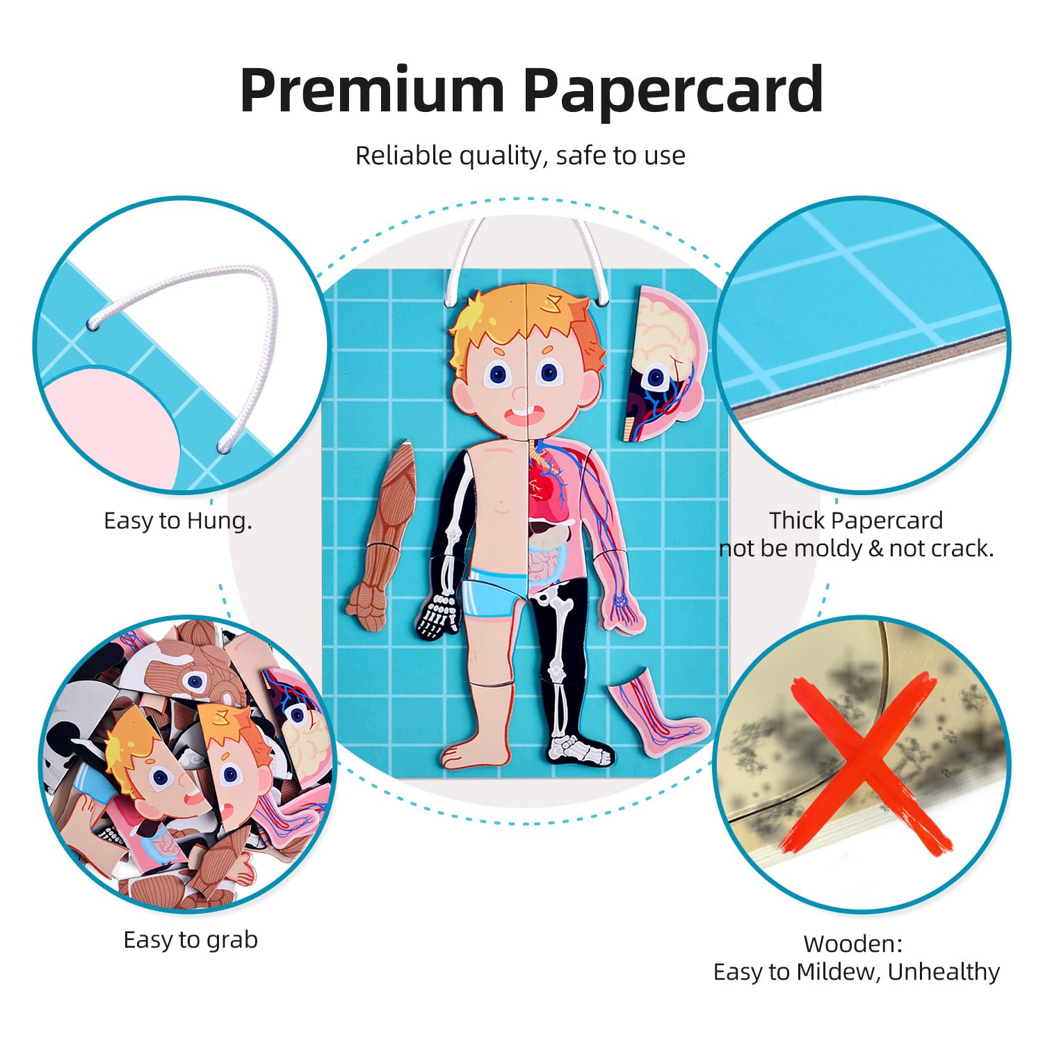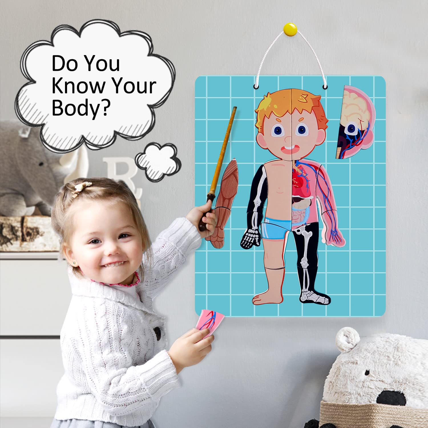Human body model puzzle for kids, 48 Pieces Magnetic Puzzles Human Anatomy Play Set ,Toys to Help Kids Learn Human Body-Educational Toys for 3-8 Years Old (Human body)