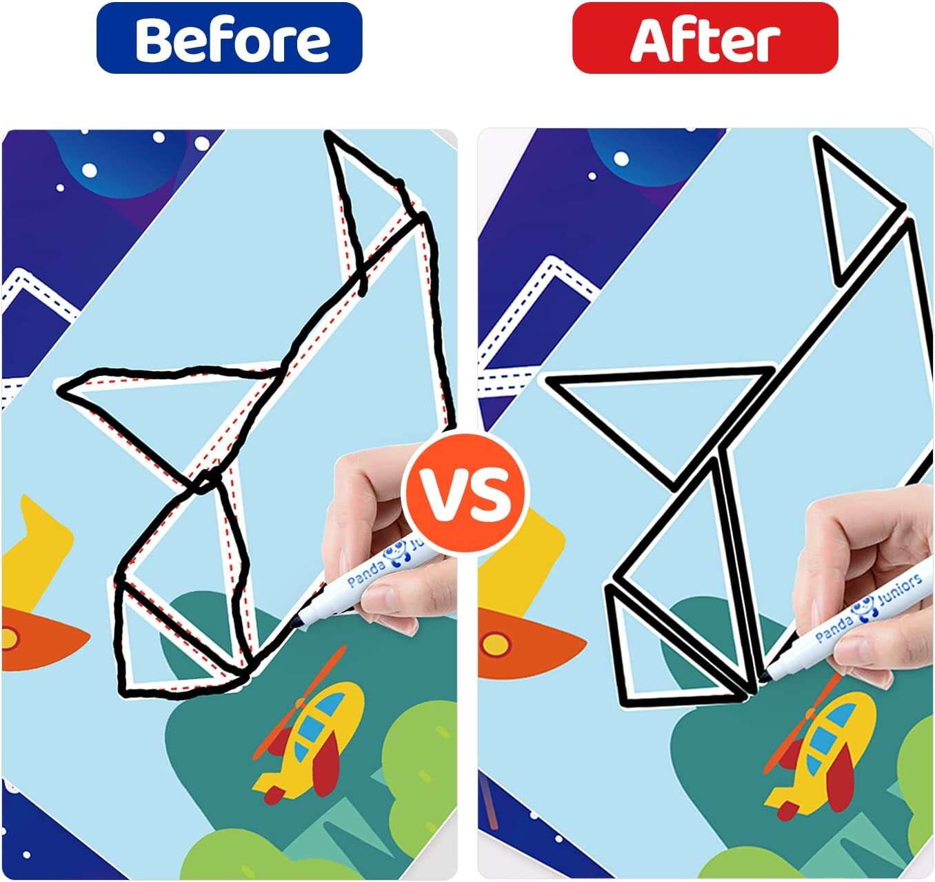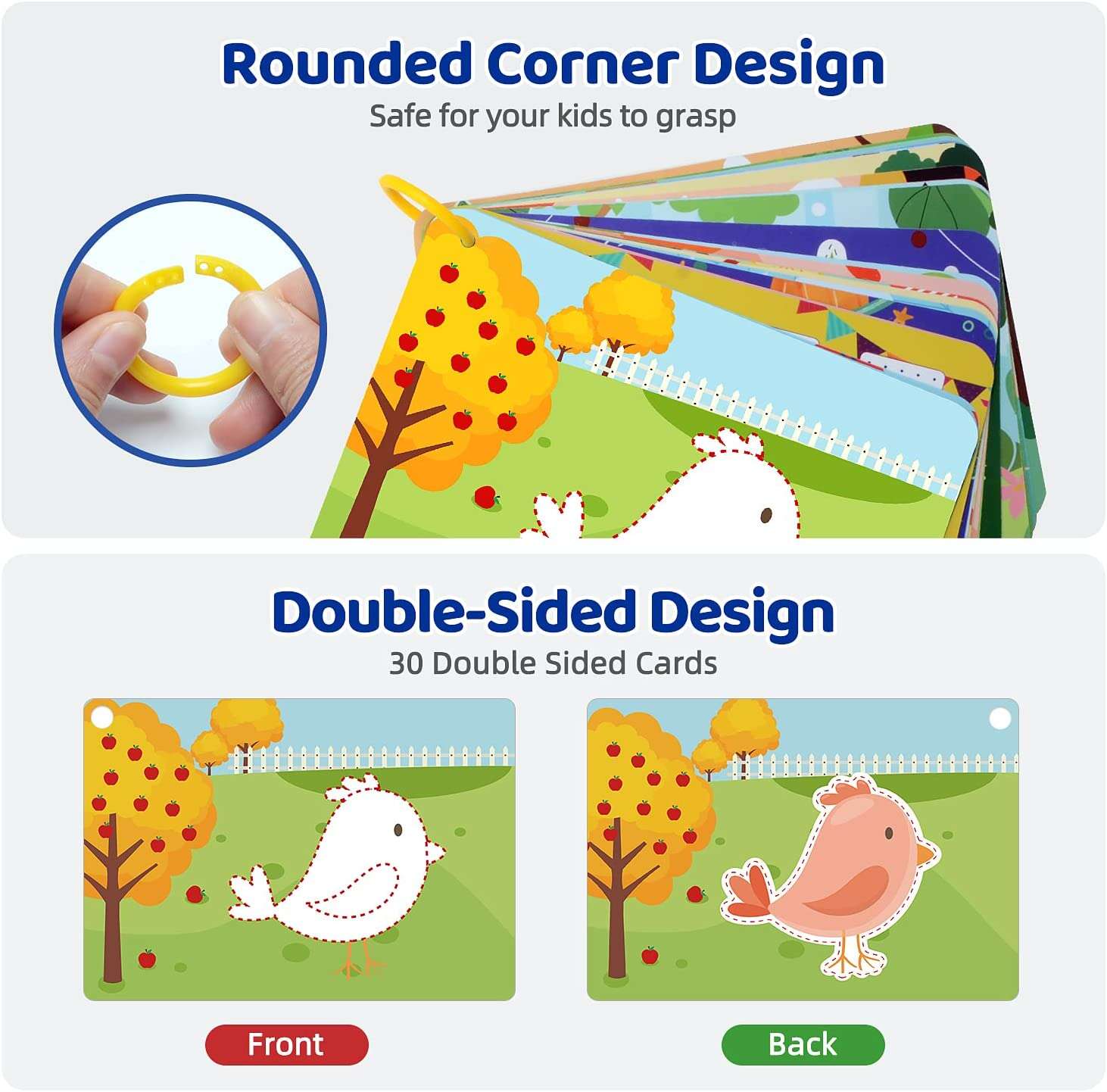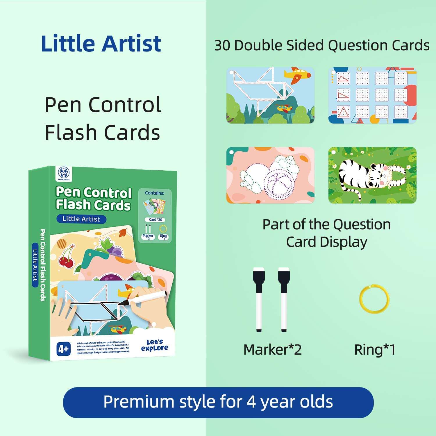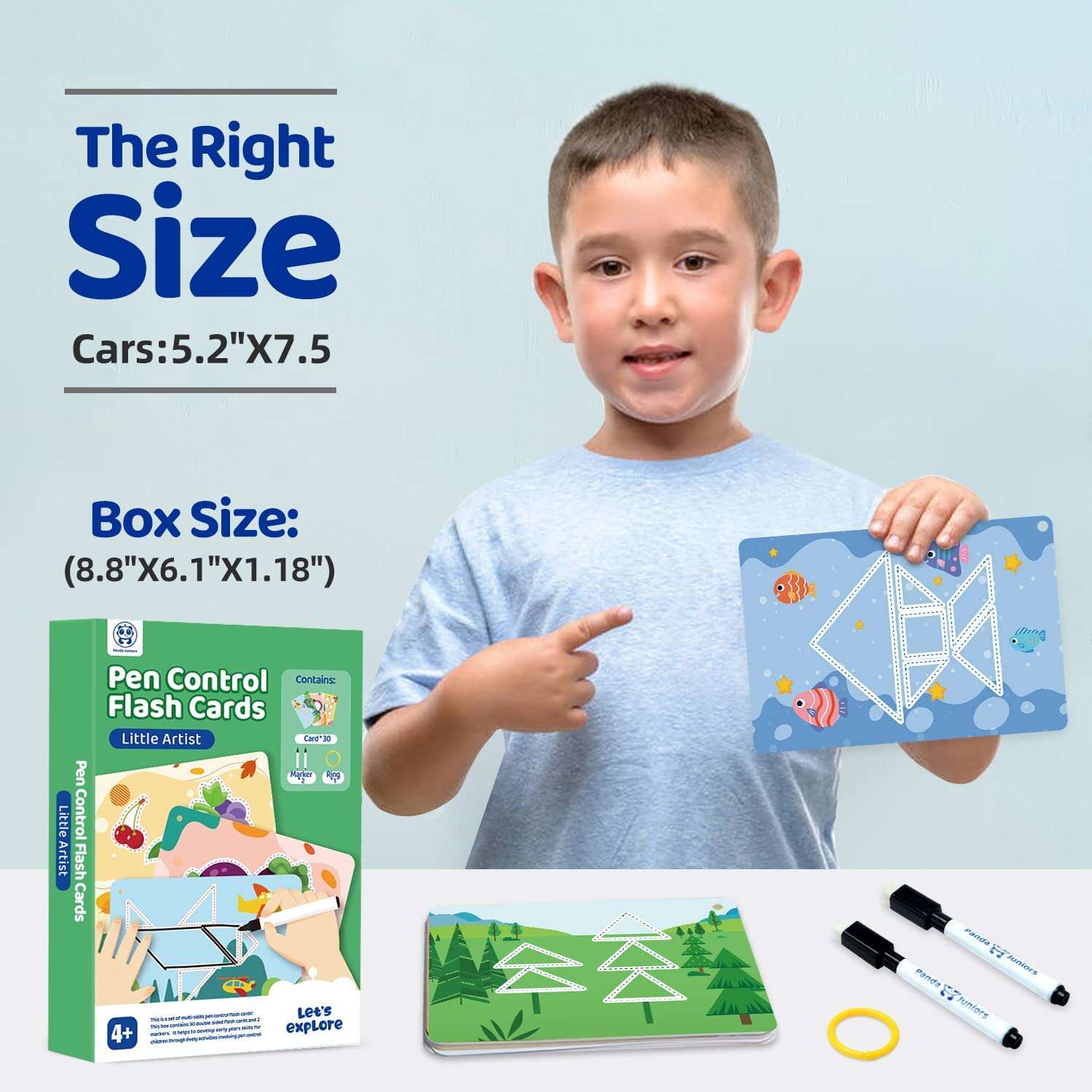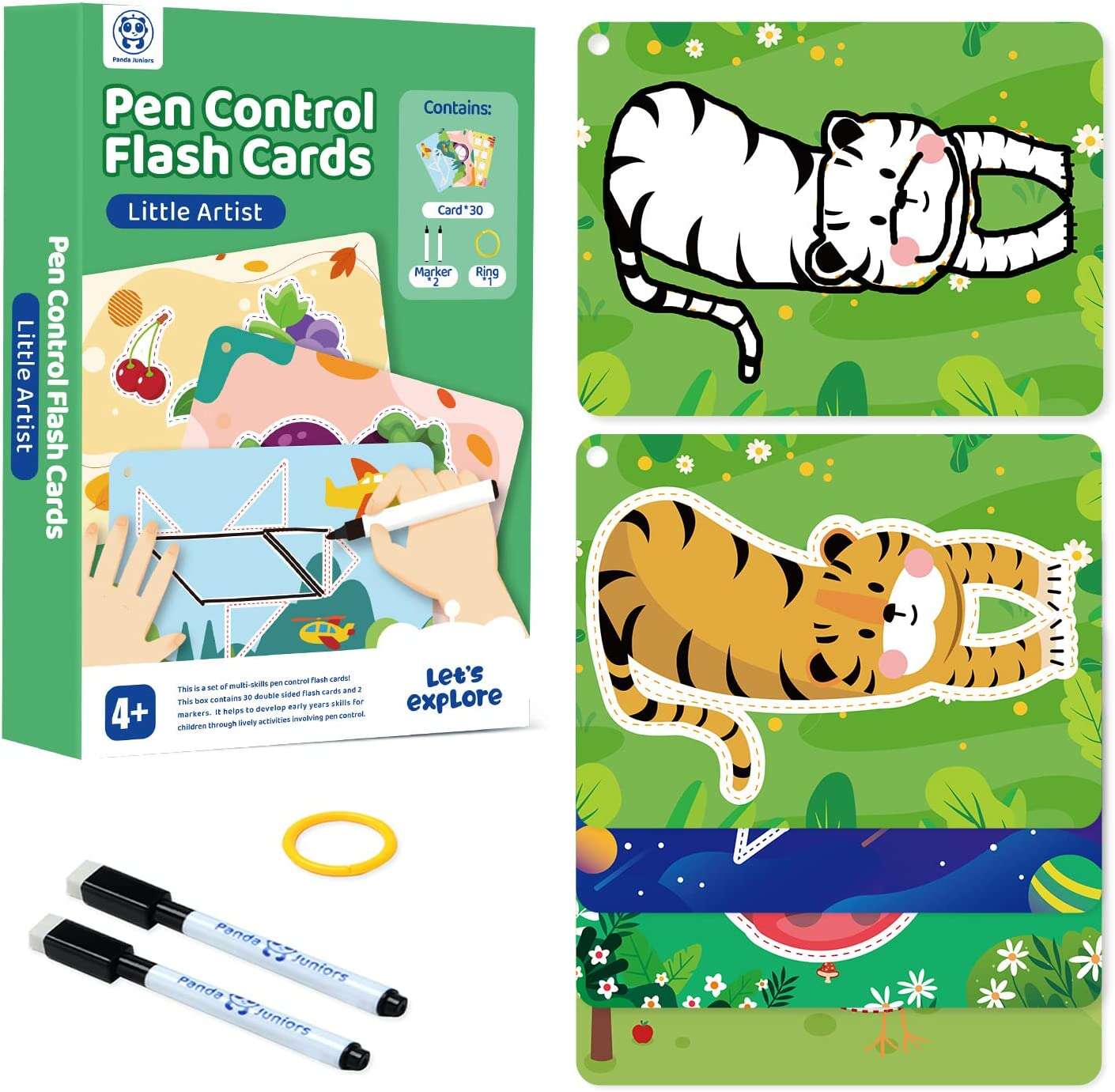 Safe Material: The flash cards set cover with double-sided splash-proof film, easy to clean. Eco-friendly pen for health. Panda Juniors flashcards made of 100% safe high-quality materials; ASTM and CPSIA compliant Safety Standards for the US & EU. Thickened glossy cardboard and rounded corner design is safe for your kids to grasp, no need to worry about breaking or bending.
