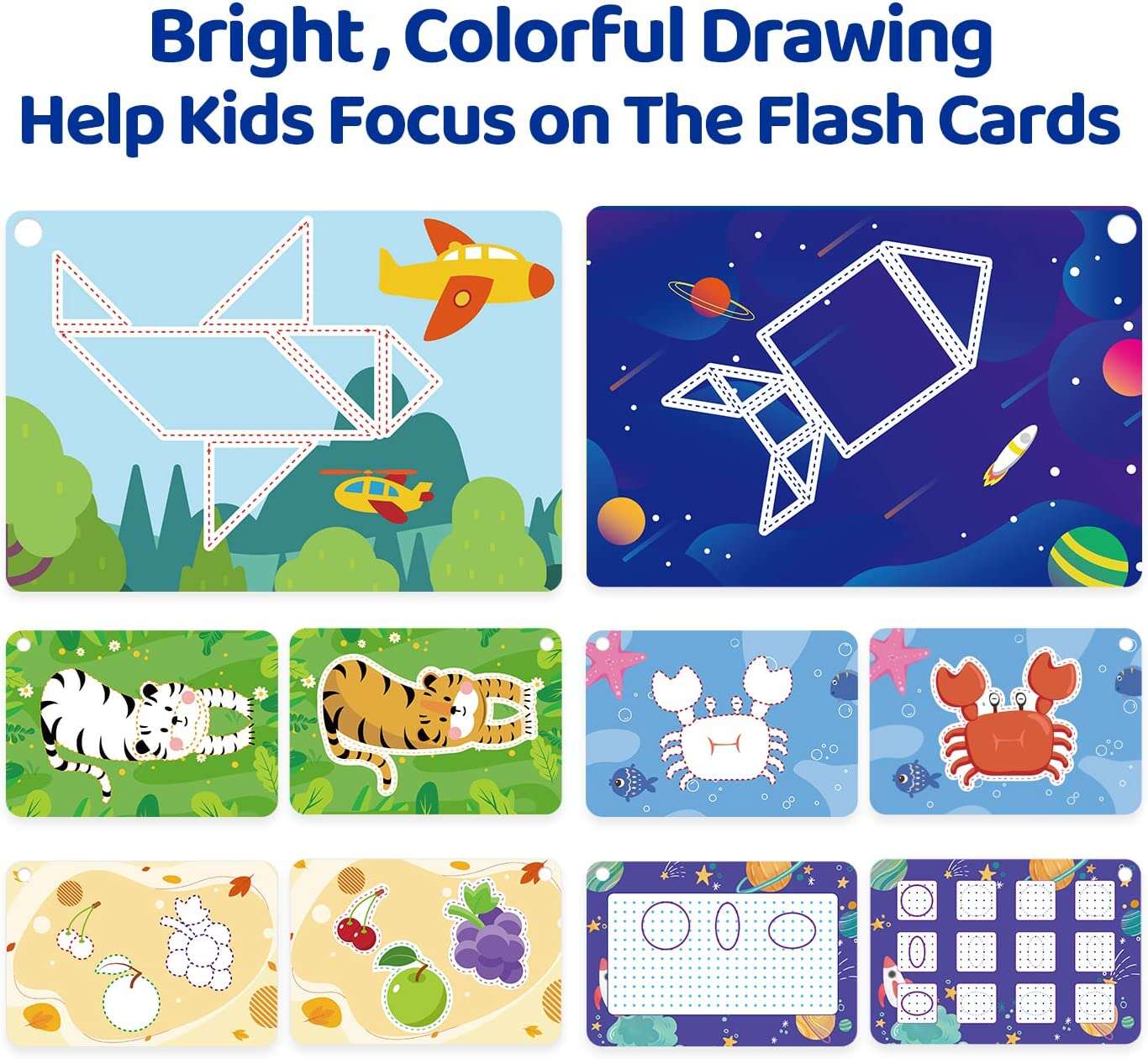 Pen Control Flashcards for Kids 3-6: An excellent tool for homeschooling use or in the preschool classroom. These cards can promote children’s Pen Control, Cognitive Ability, Memory, Hand-eye Coordination, also encourage kids to explore more freely. Kids and parents who use our flashcards for practice are using one of the most effective learning techniques available.