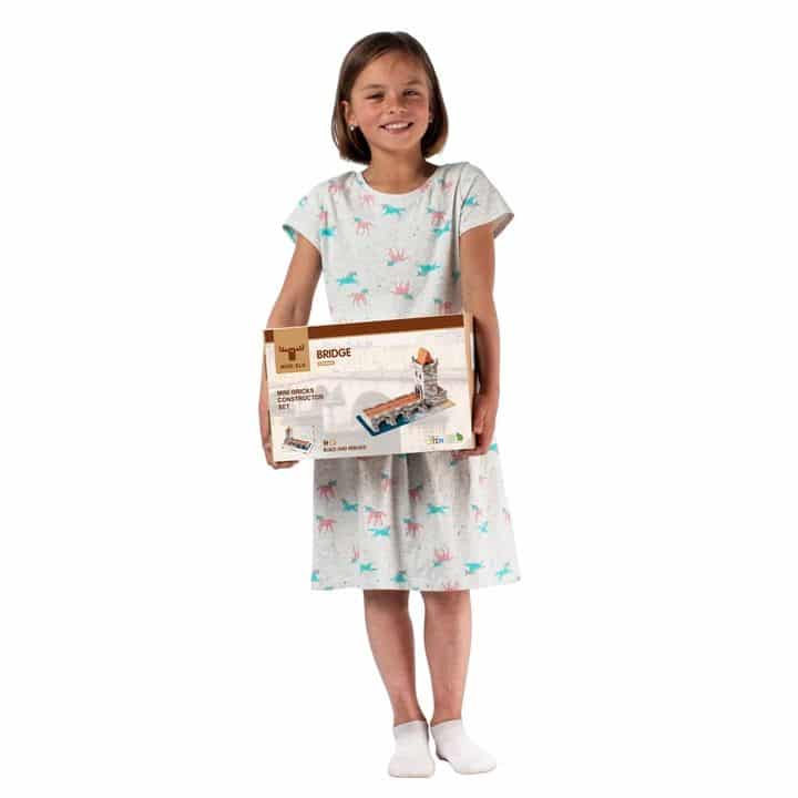 Our construction sets are reusable. To deconstruct it just put the model in water and separate the bricks. Dry them and they are ready for use again.
